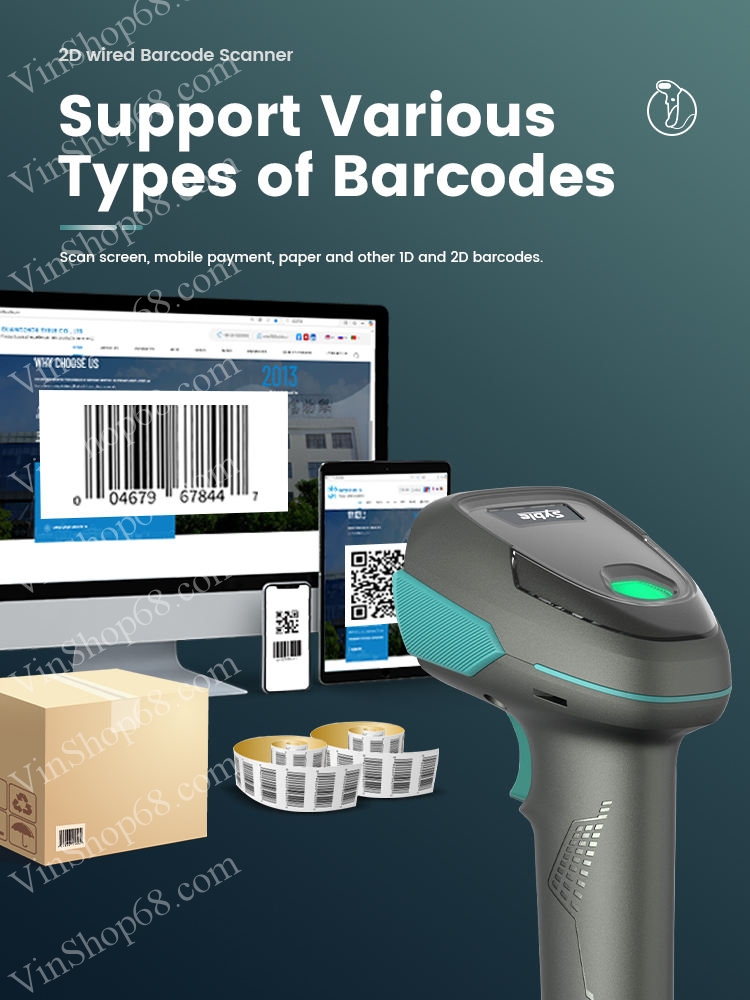 Hỗ Trợ Đa Dạng Mã Vạch: Máy có khả năng đọc các loại mã vạch 1D và 2D phổ biến (bao gồm mã QR), dễ dàng quét cả trên giấy và màn hình điện tử.